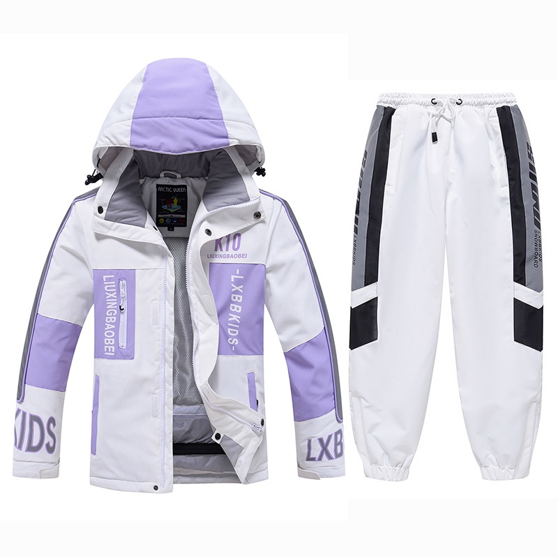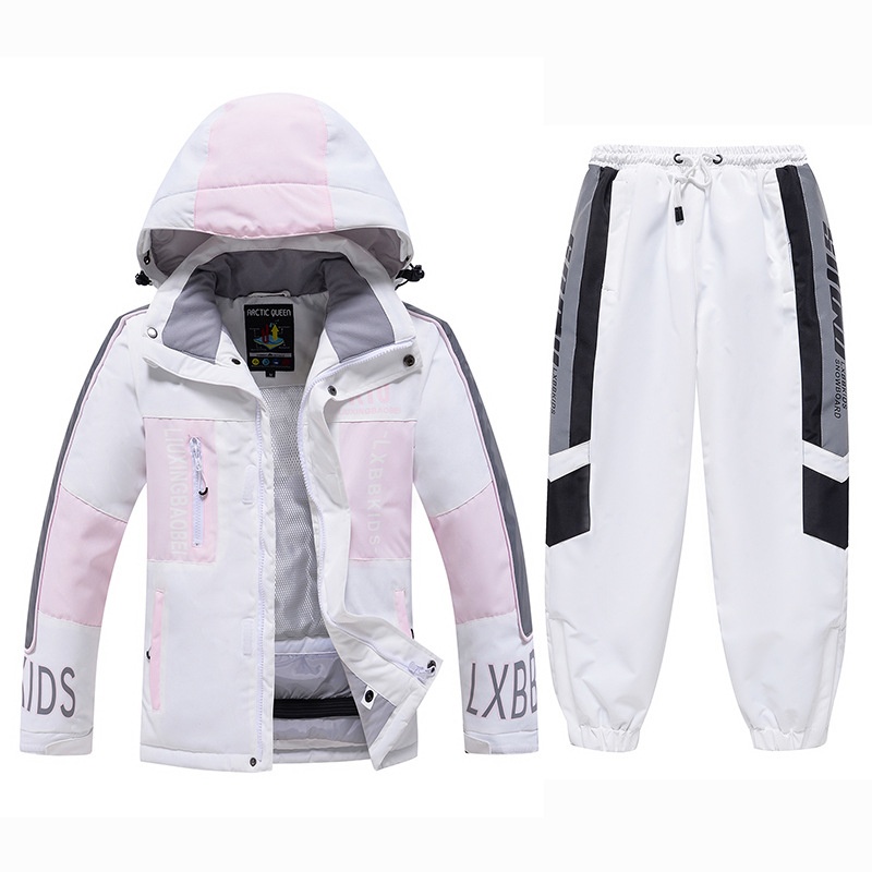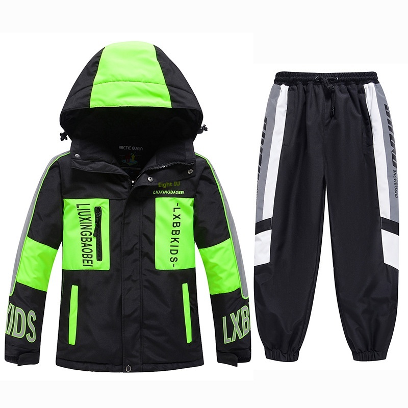 001 Neuer Kinderanzug für Jungen und Mädchen, Winter-Outdoor-Windschutz, wasserabweisend, warm, dicke Skijacke und -hose
