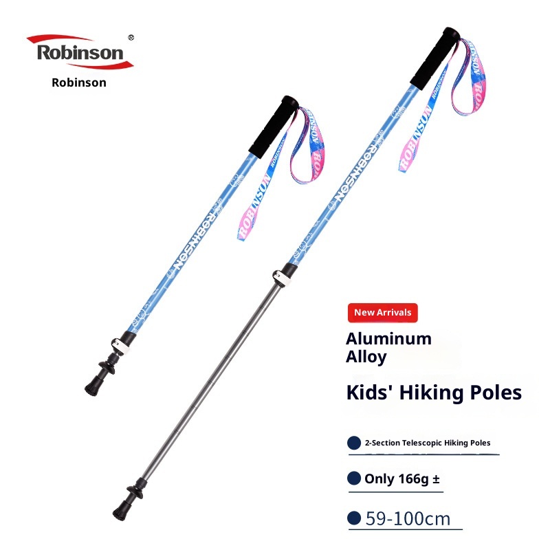 001 Robinson Kinder-Trekkingstock aus Aluminiumlegierung mit externer Verriegelung, ultraleicht, kurz, teleskopierbar, tragbar, für Jugendliche, Jungen und