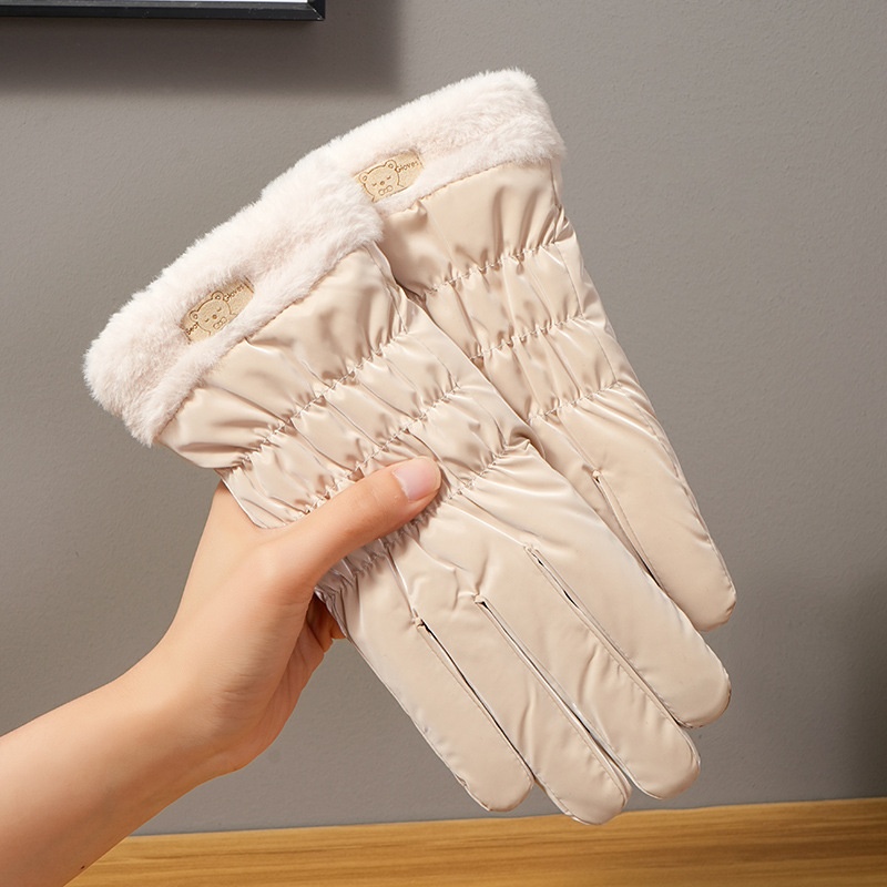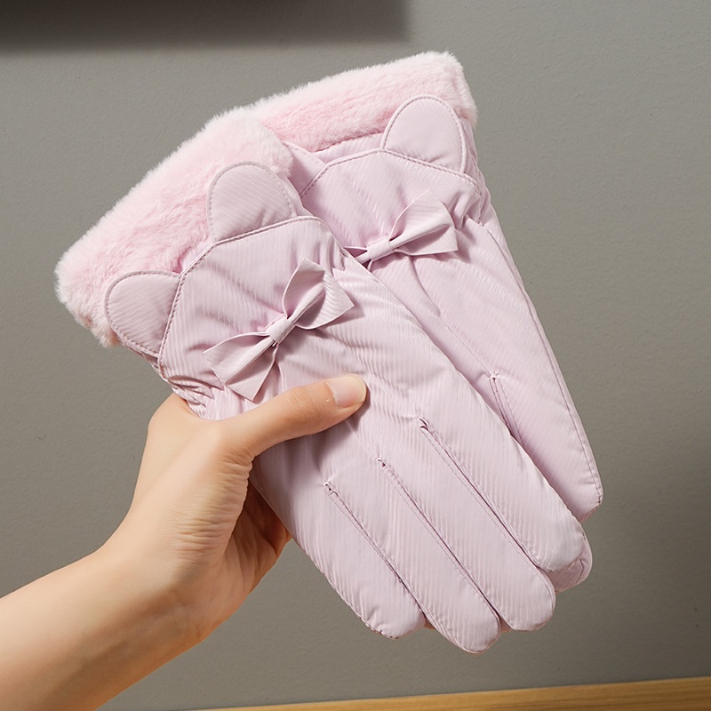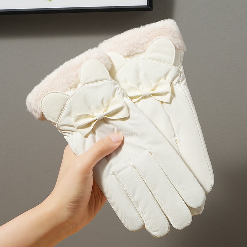 001 Ski Warme, wasserabweisende Handschuhe für Studentinnen mit niedlichen Bärenohren, Touchscreen-Funktion, Winter-Radfahren, kältebeständig, verdickt, Outdoor-Handschuhe
