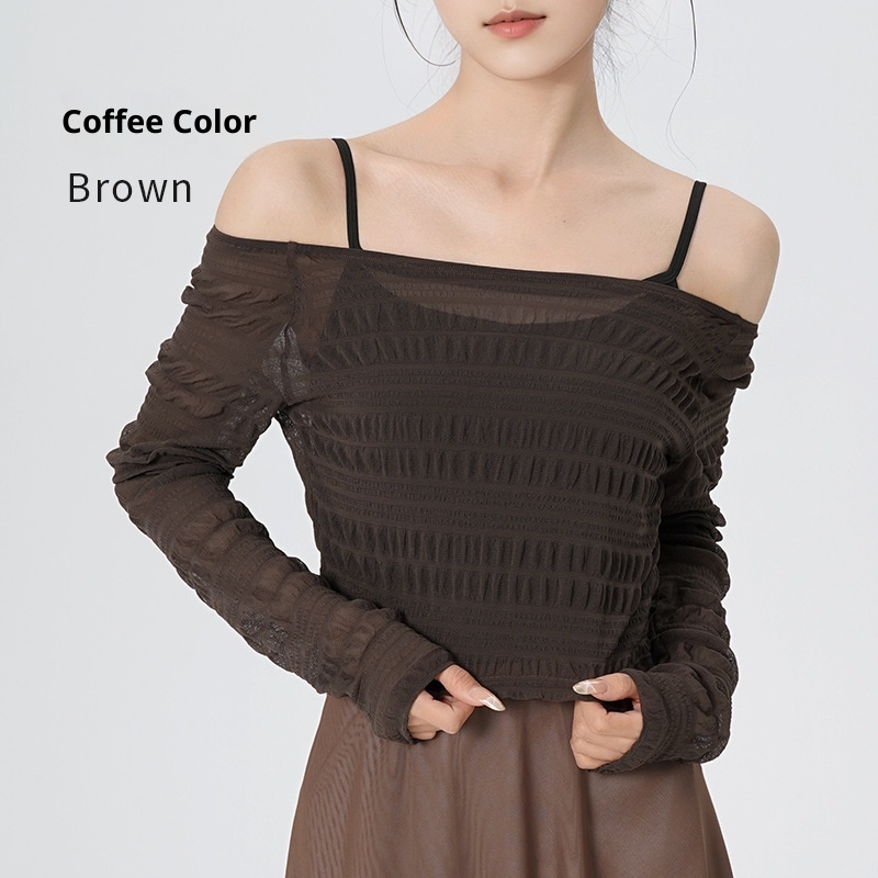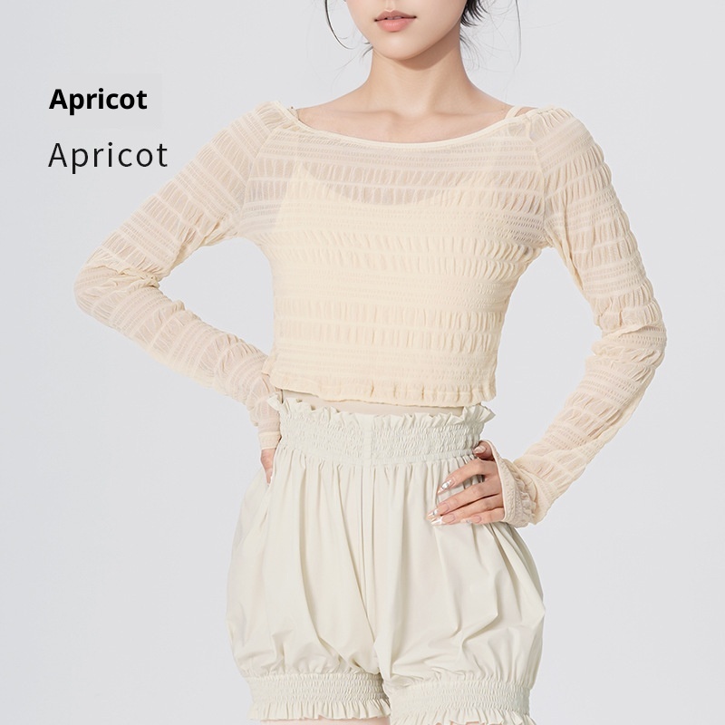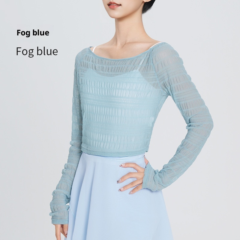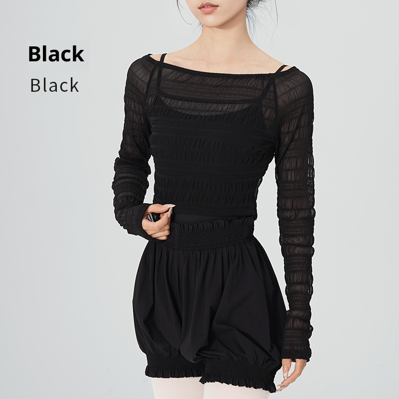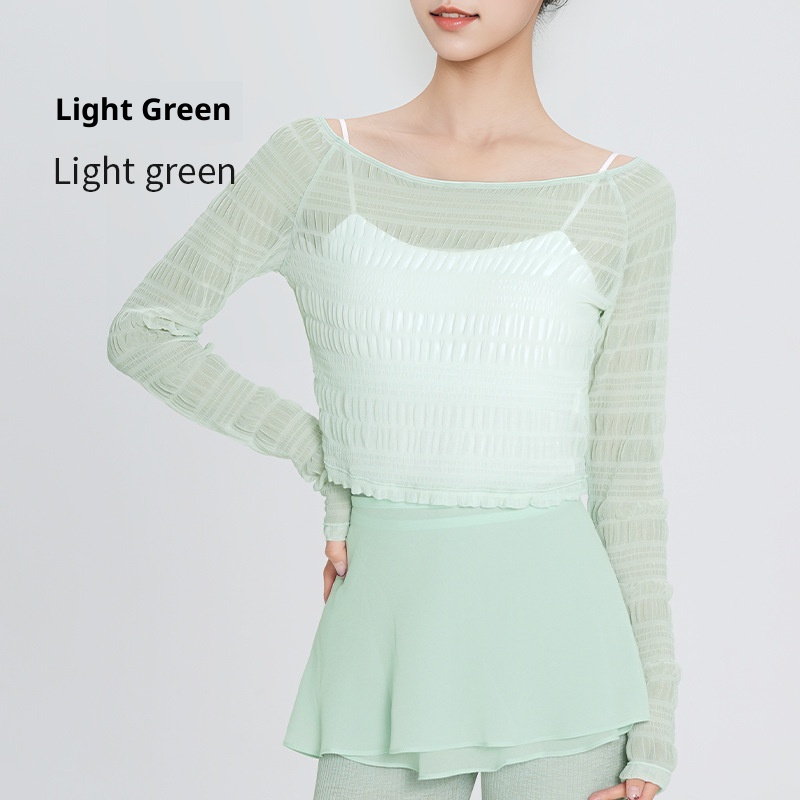 001 Yoga-Shirt für Erwachsene, Spitzenbluse für Damen, neues, stylisches Zwei-Wege-Oberteil, lange Ärmel, Mesh-Oberteil