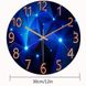 1 Stück 12-Zoll-Wanduhr mit geometrischen Elementen, dunkelblau, verdicktes gehärtetes Glas, geräuschloses Quarzwerk, Wohnzimmerdekoration, Geschenk
