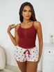 2-teiliges Pyjama-Set für Damen, Weste mit Hosenträgerknöpfen, zweiteiliges Set mit Shorts mit Blumenmuster, bequeme Loungewear