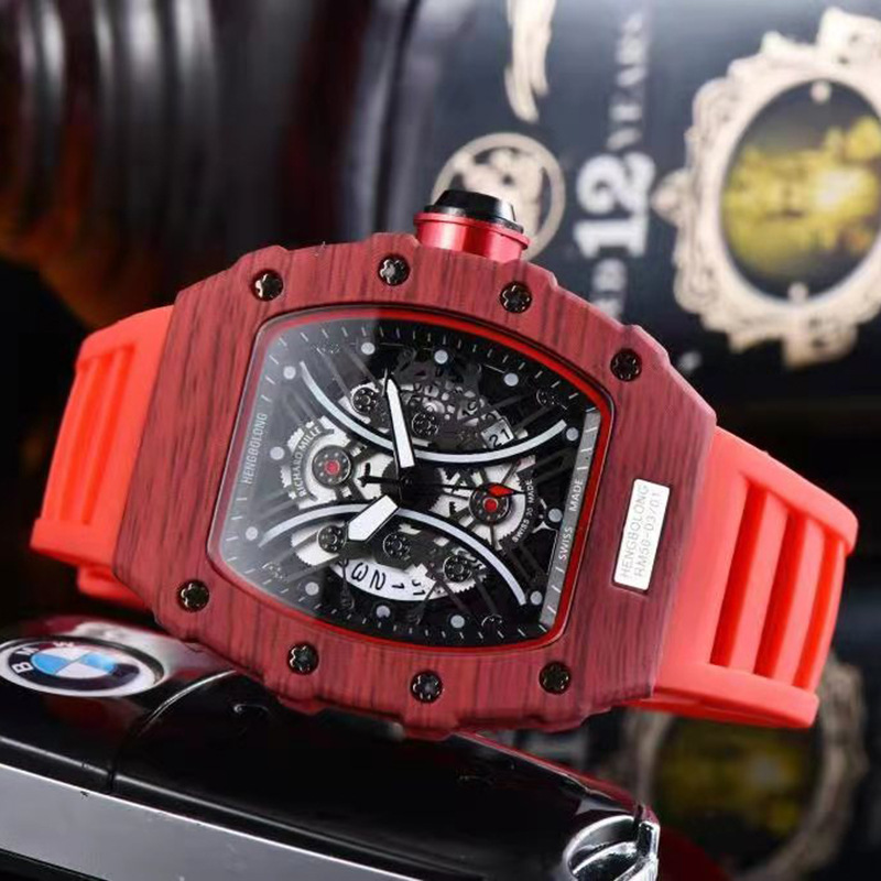 2021 neue tonnenförmige Holzmaserung Herrenuhr, modische hohle Geisterkopf-Quarzuhr