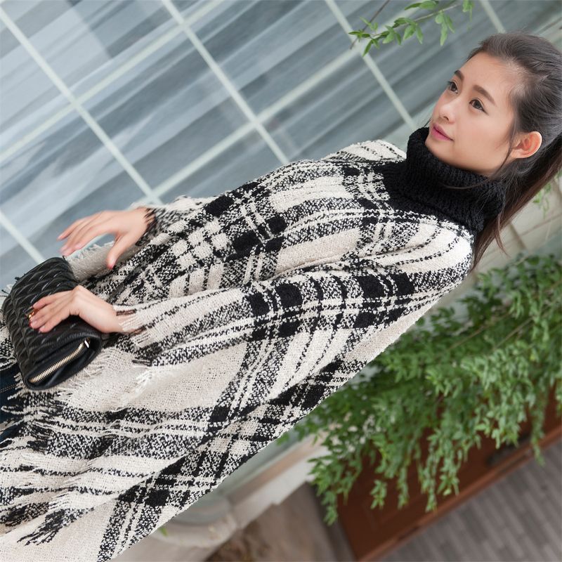 2023 Herbst/Winter Damen Neuer ethnischer Stil Gewebter Stehkragen Karierter Schal Mittellanger Umhang für Damen