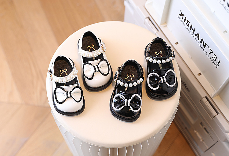2023 kinder Leder Prinzessin Frühling und Herbst Weiche Sohle Walking Baby Mädchen Bean Einzelnen Schuhe