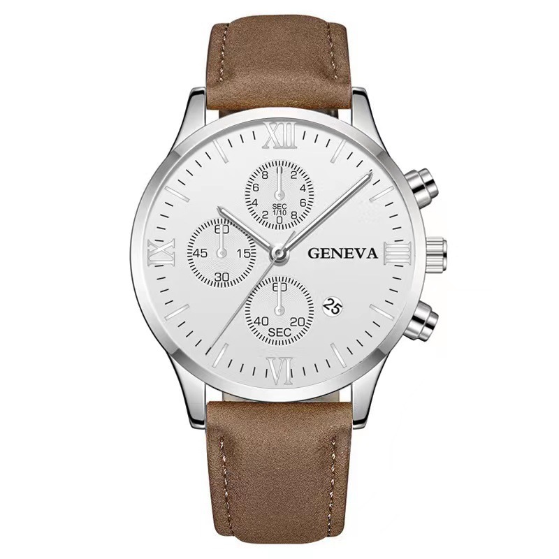 2023 Neue heiß verkaufte Uhren für Herren Atmosphäre Gürtel Business Quarzuhr Herren Gefälschte Drei-Augen-Uhr Set Uhr Geschenk