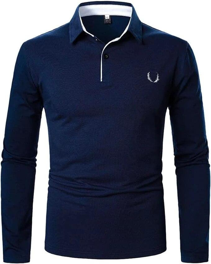 2023 men's polo shirt with three color patchwork design, men's long sleeved polo