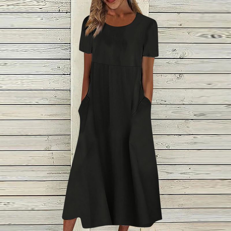 2023 Sommer Neues Langes Damen Casual Solid Kurzarm Rundhalskleid