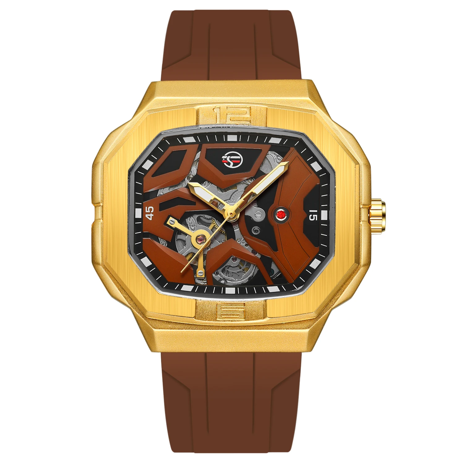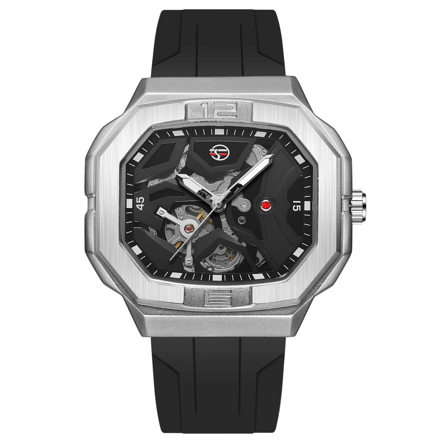 2024 FORSINING Square Skeleton Mechanische Echte Herrenuhr Automatisches Uhrwerk Weiße Sport Wasserdichte Luxus-Männeruhren