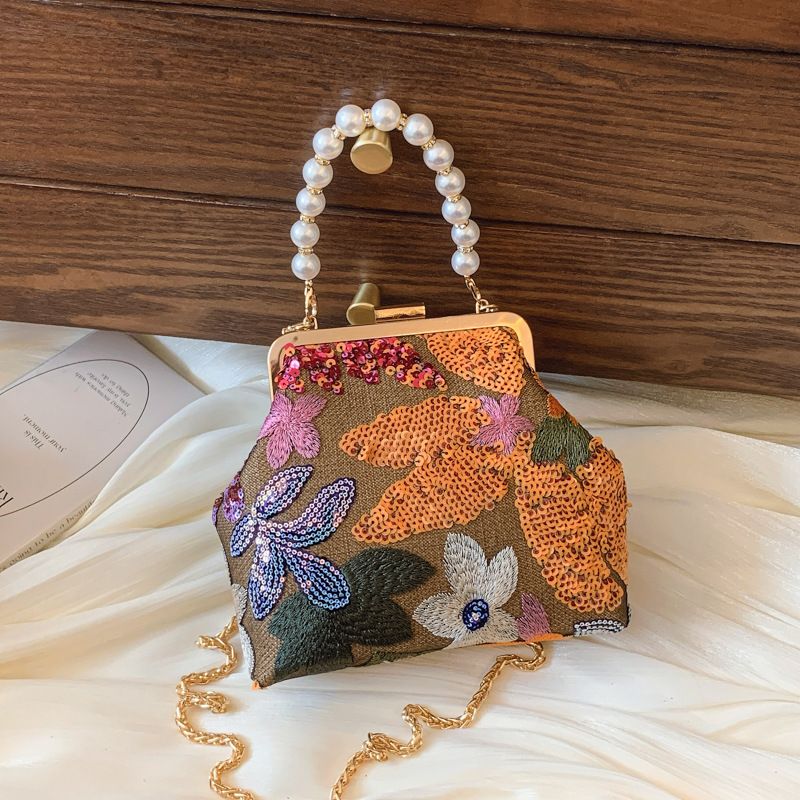 2024 Autumn Winter New Linen Bag Fashion Sequin Patchwork Bag Embroidery Trendy Bag Clip Evening Shoulder Bag