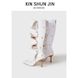 2024 Liu Nagelschnalle, die zwei dünne High Heels verbindet, Cowboy-Faltschuh-Persönlichkeit, würzige Mädchenmode, lang
