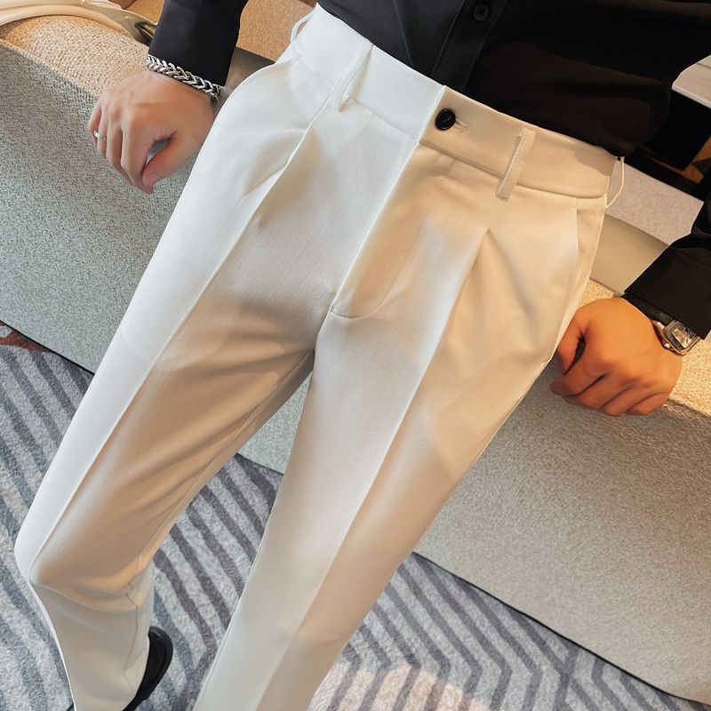 2024 Neue britische Freizeithosen für Herren, vielseitige Hosen in Volltonfarbe, lange Hosen mit schmaler Passform, Business-Freizeithosen