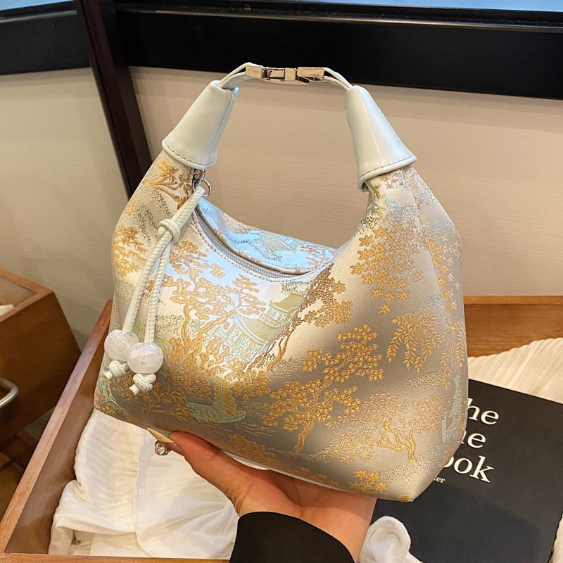 2024 Neue chinesische Handtasche für Frauen im antiken Hanfu-Stil, modisch strukturierte Schulter- und Umhängetasche