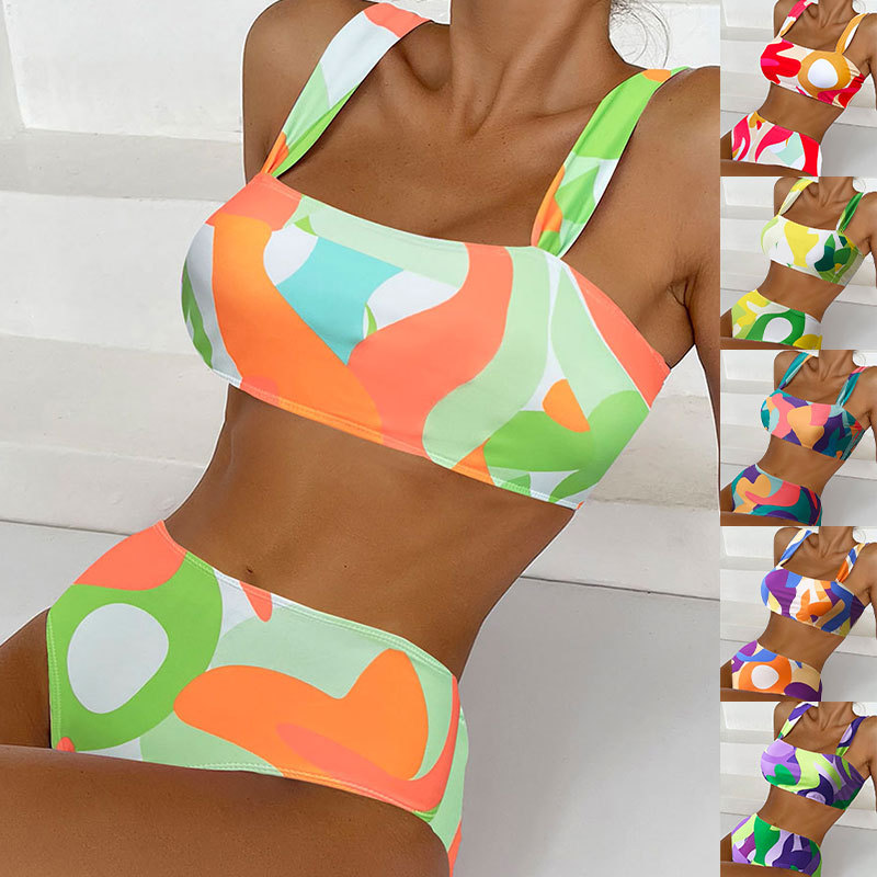 2024 New Printed Bra Swimsuit Women's Printed Color Block High Waist Triangle Bikini