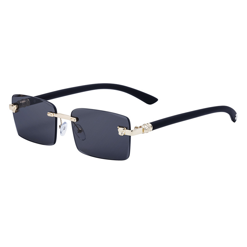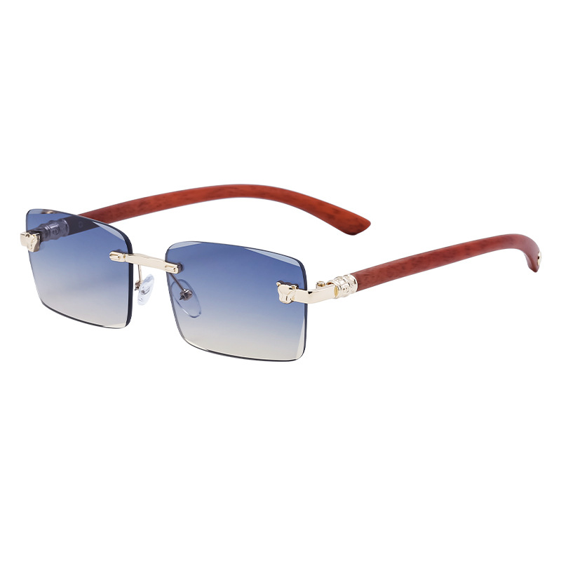 2024 Neue europäische und amerikanische rahmenlose Retro-Sonnenbrille für Herren mit Spiegelbeinen aus Holzmaserung und Sonnenbrille für Herren
