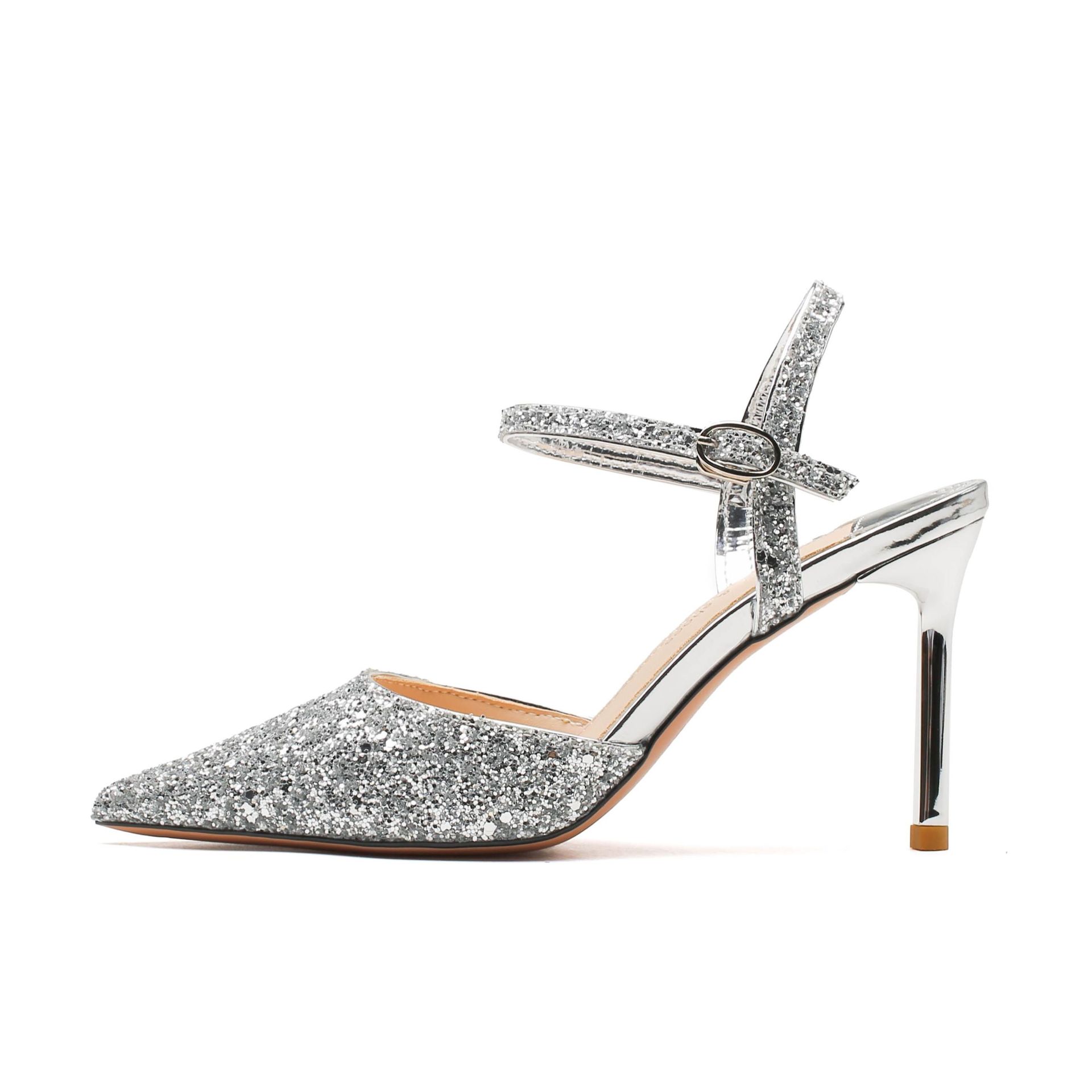 2024 Neues Pailletten-Stirnband, hinten leere High Heels, Sandalen, zwei Tragen, High Heels, High Heels, Eleganz, Pendeln, professionelles Bankett