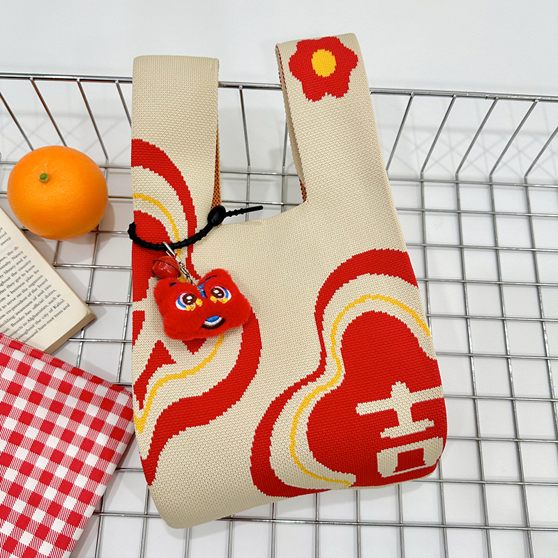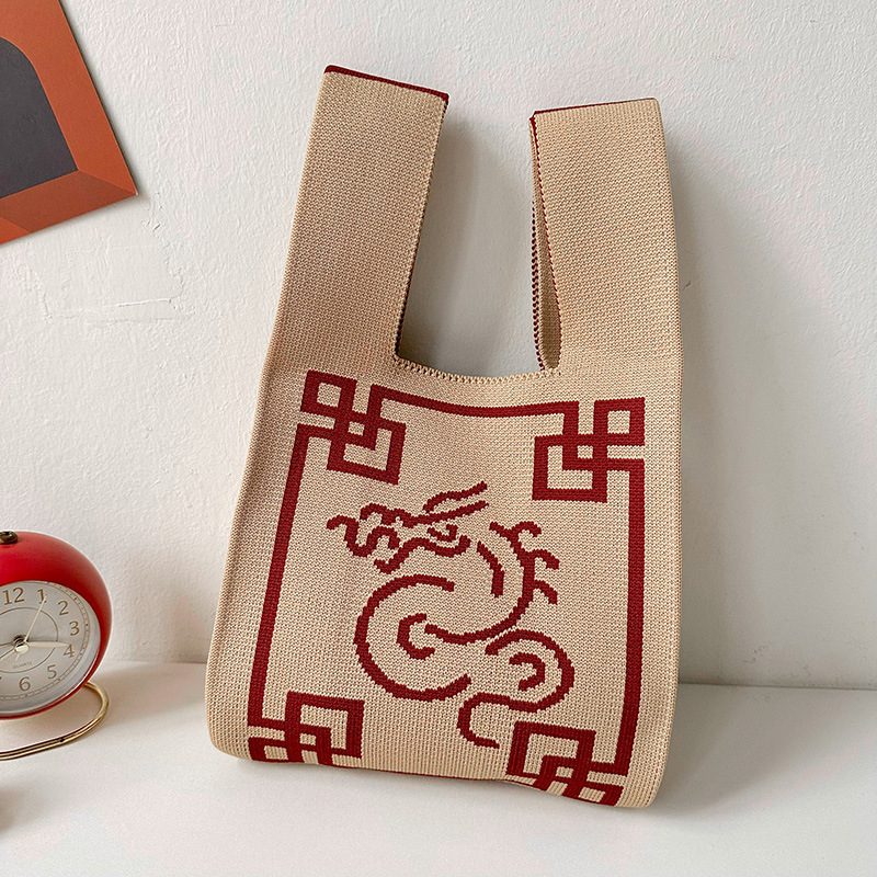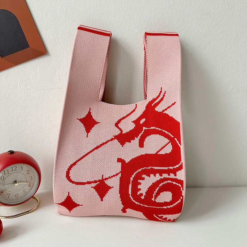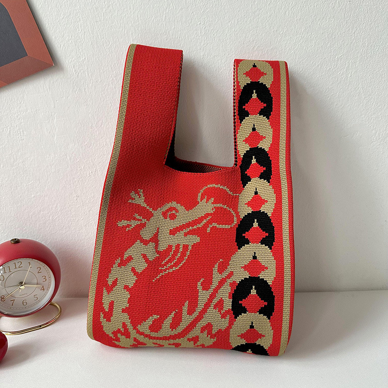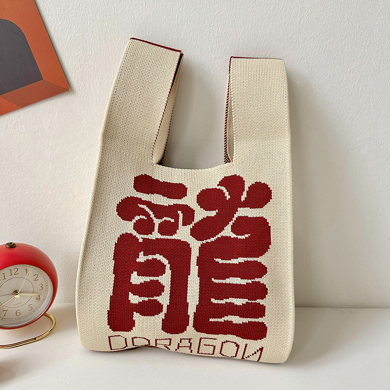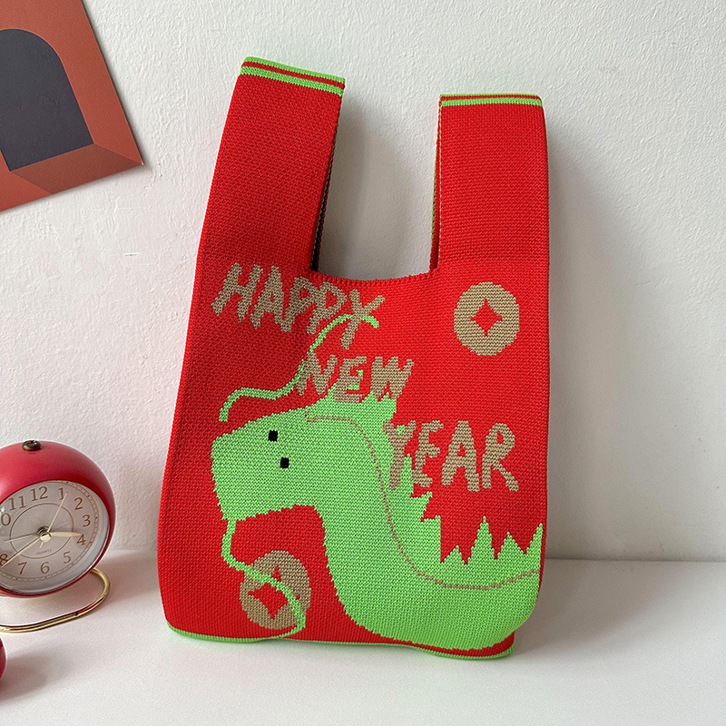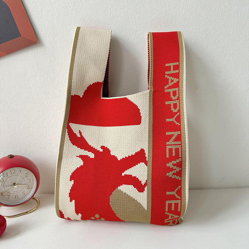 2024 the Year of the Loong Red Celebration Knitted Handbag Women's Versatile High grade New Year Gift Shoulder Bag Handbag