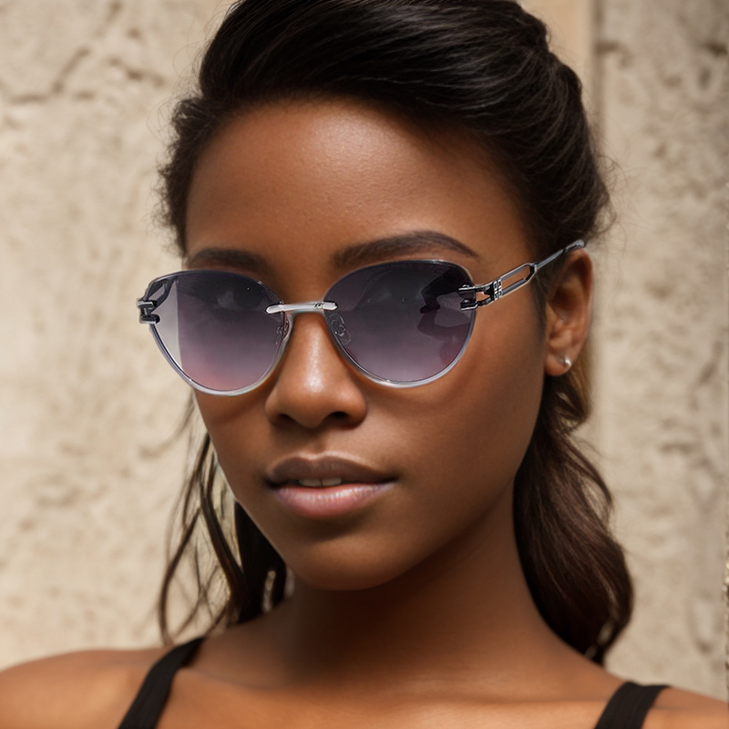 2024 Randlose Cat-Eye-Sonnenbrille für Damen mit Luxus-Logo, coole Mode
