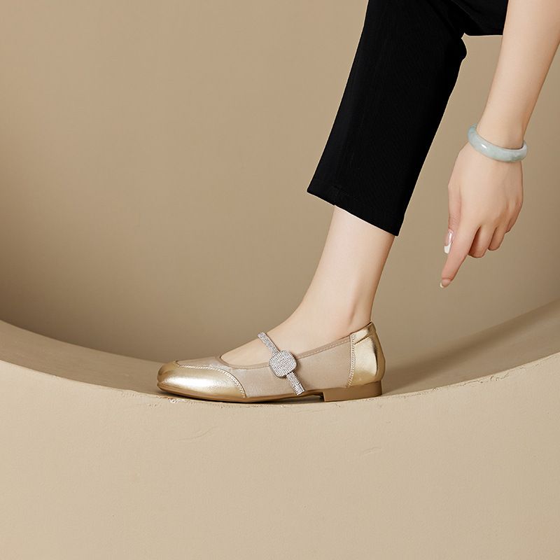 2024 sheepskin genuine leather mother's shoes women's French rhinestone ballet dance shoes soft soled soft faced bean shoes women's grandmother shoes