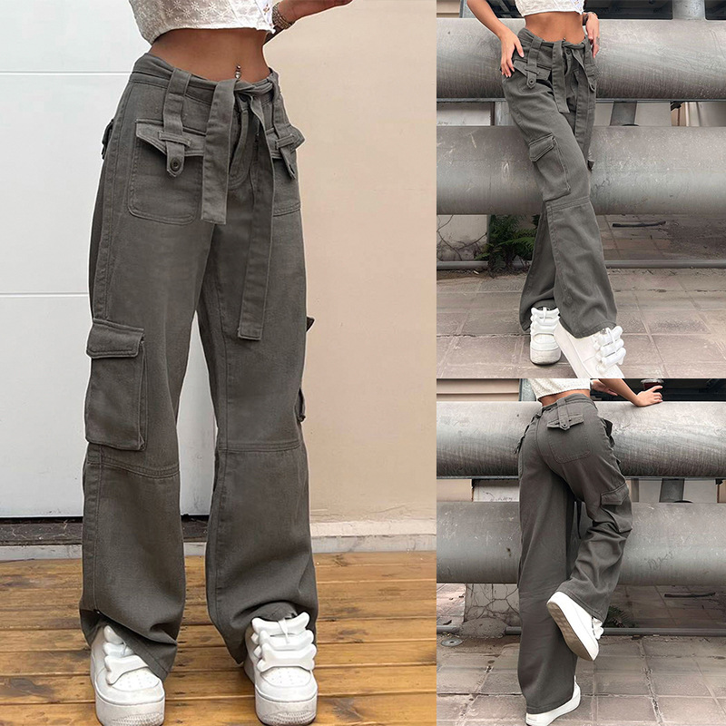 2024 Summer Women's Wear Instagram Street Style American Multi Pocket Belt Casual Work Wear Jeans for Women