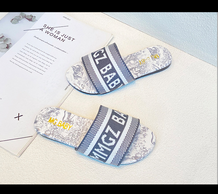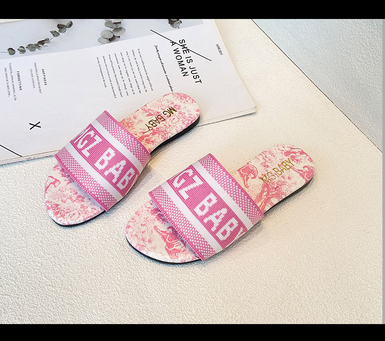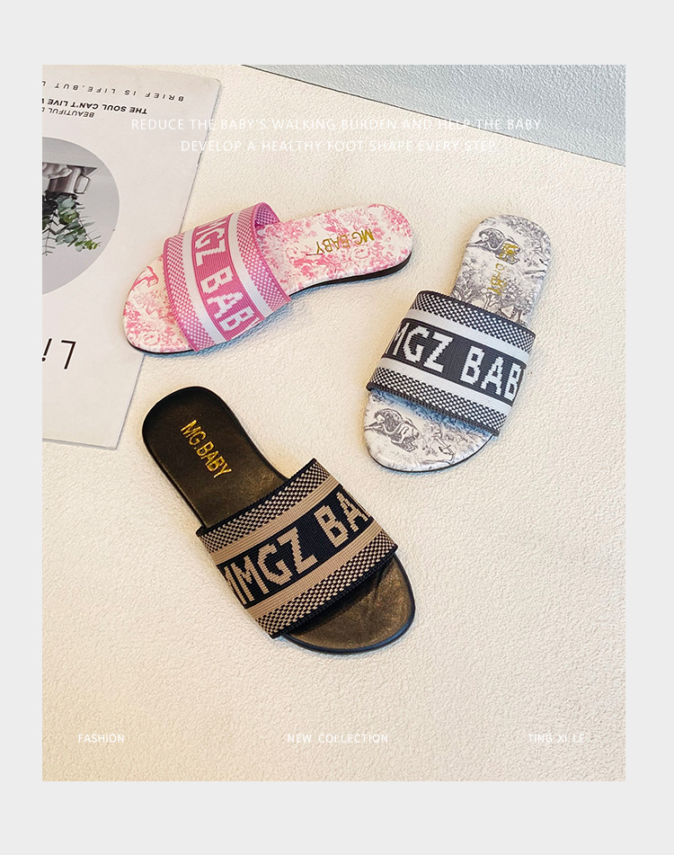 2023 Summer New Korean Children's Flat Bottom Letter Cool Slippers for Little Girls Soft Sole Outwear Fashion Casual Slippers