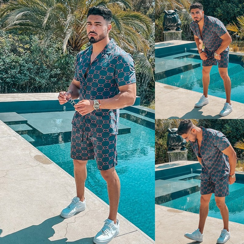 2024 Sommer Strand Loose Print Kurzarm Herren Set Shirt