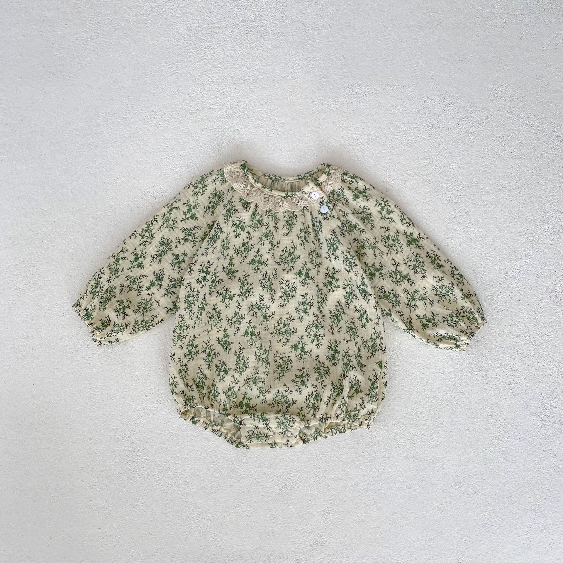 2024 frühling 0-3 Jahre Alten Weiblichen Baby Kleine Spitze Kragen Gedruckt Langarm Ha Kleidung Tasche Butt overall crawler Kleidung