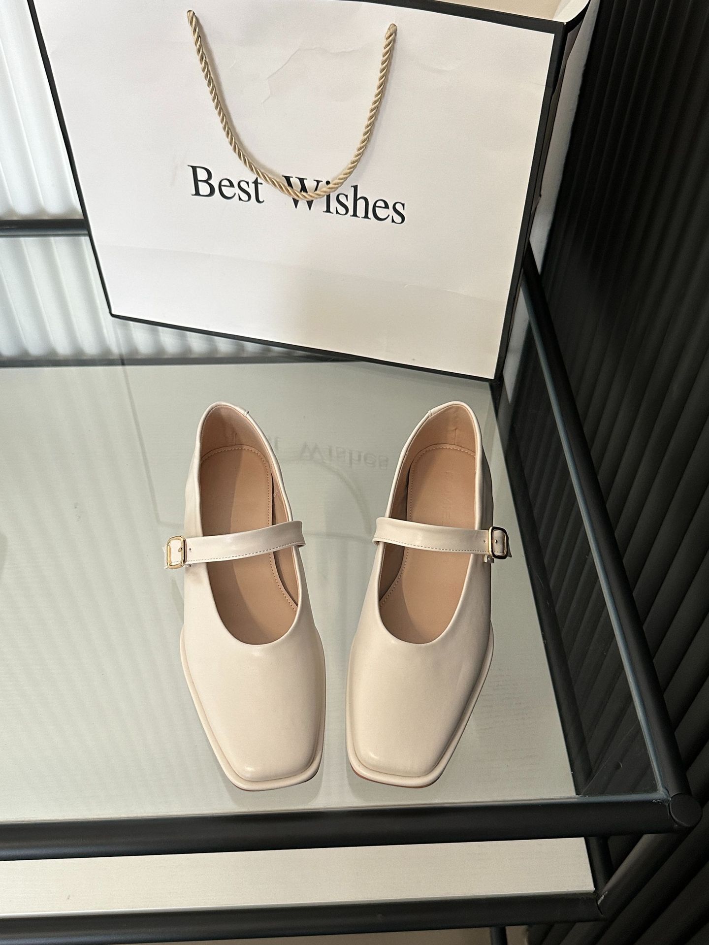 2024 Spring and Autumn New Women's Shoes Mary Jane Shoes One line with Buckle Square Head Flat Bottom Ballet Single Shoe Restoration