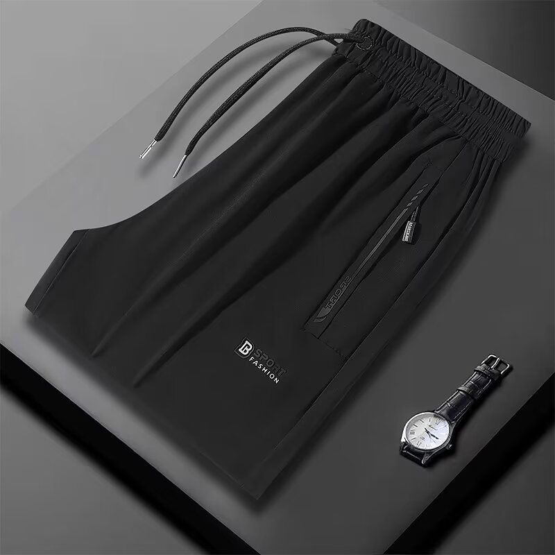 2024 Sommer dünne Eisseide heiß gestempelt einfache Sport lose große Klimaanlage lässig lange Hosen Herren