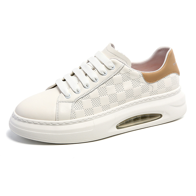 20243 Neue Sommer Atmungsaktive Platte Kappe Leder Rindsleder Sport Kleine Weiße männer Weiche Sohle Casual Schuhe