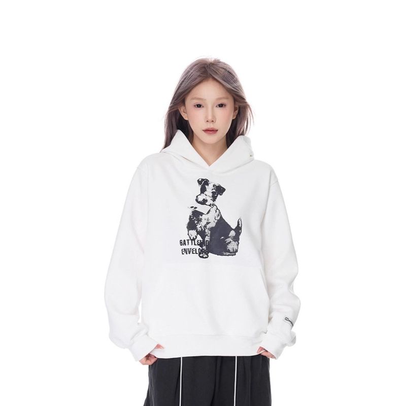 2025 American Street Style Dog Print Hoodie for Men and Women, New Autumn Loose Fit Sweatshirt