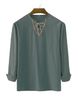 2025 Frühling und Herbst Neues lockeres, einfarbiges, langärmeliges Baumwollleinen-Stehhalshemd für Herren