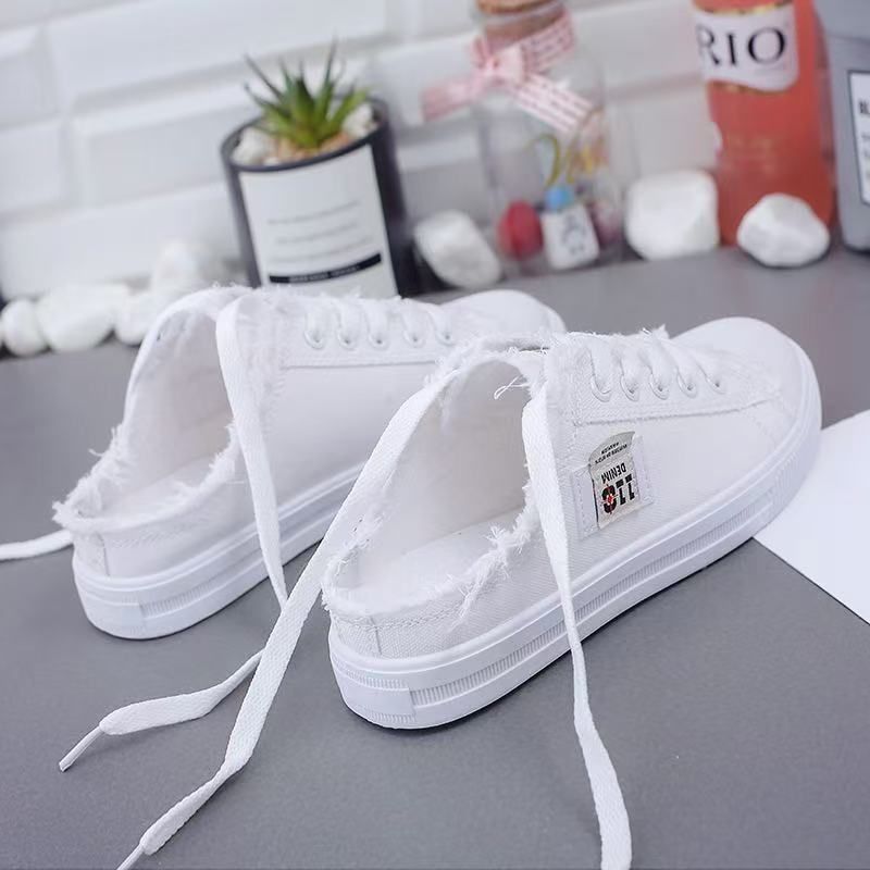 2025 Spring New Canvas Shoes for Women, Half Slippers, Slip-On, Versatile, Breathable, White Sneakers, Korean Style Board Shoes