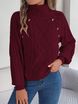 2025 Herbst Winter Casual Solid Color Button Zopfmuster High Neck Laterne Ärmel Pullover Pullover Damenmode