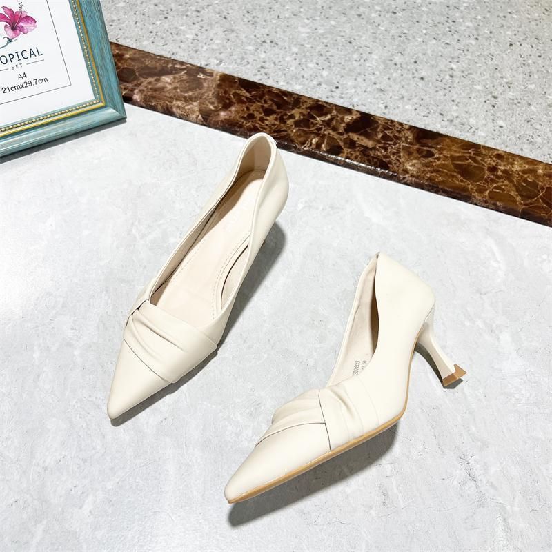 2023 Autumn/Winter New Fashionable Versatile Women's Shoes with Thin Heels, Middle Heels, Pointed Points, Simple Temperament, Versatile Single Shoes, Soft Leather High Heels