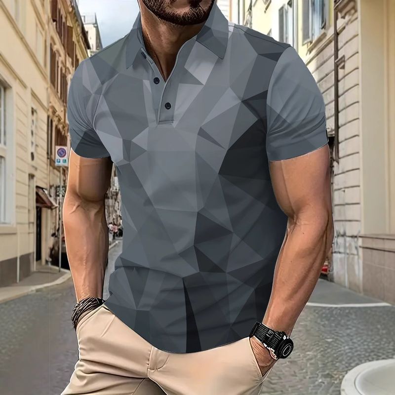 2025 Herren Neues unregelmäßiges geometrisches Business Casual Poloshirt Sommer Kurzarm-T-Shirt