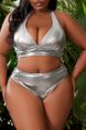 2025 New Women's Plus Size Bikini Solid Color Beach Fashion Swimsuit