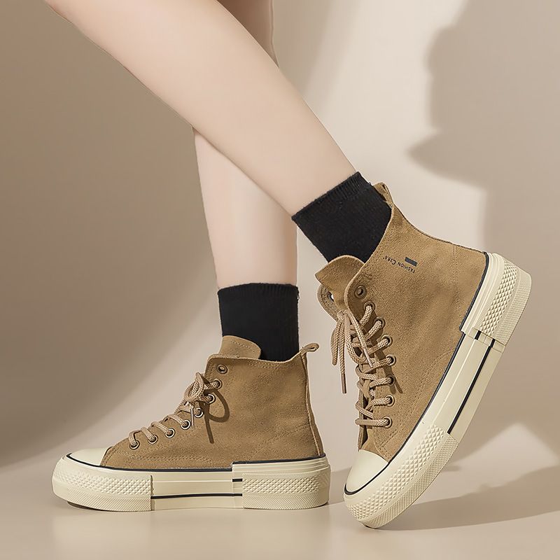 2025 Fall/Winter New Women's High-Top Canvas Sneakers Casual Chunky-Sole Athletic Shoes