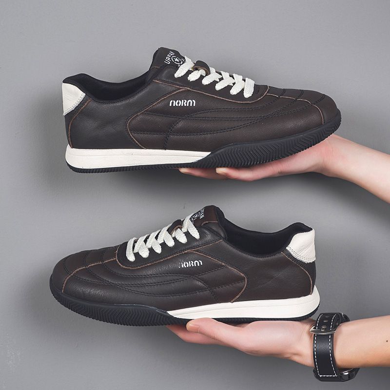 2025 Neue Leder-Agan-Trainingsschuhe für Herren mit dicker Sohle, lässige Sneakers, leicht, gesteppt, runde Zehenpartie, Schnürschuhe, bequem zu tragen