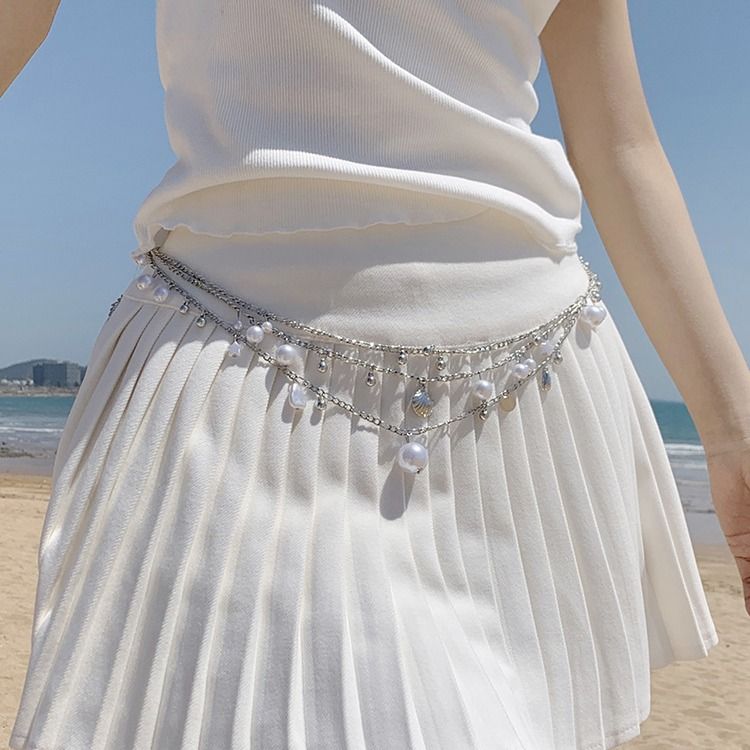 2025 New Pearl Waist Chain Multi-layer Shell Pendant Chain Dress Accessory Design Sense High-end Belt