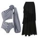 2025 Neuer sexy einteiliger Badeanzug für Damen mit gerüschtem, gestreiftem Bikini und langem Netzrock