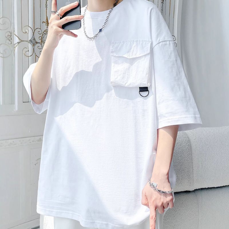 2025 Summer New American Design Pocket Short sleeved T-shirt for Men and Women, Large Size Summer Simple Pure Cotton T-shirt