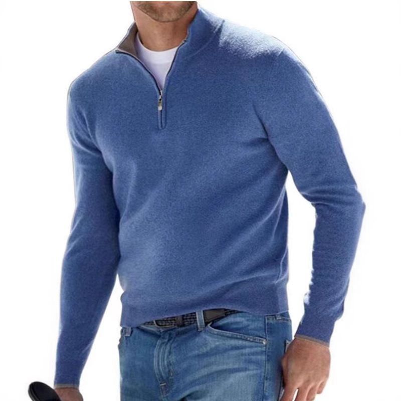 2025 Neues Frühjahr und Herbst Langarm V-Ausschnitt Wollfleece Reißverschluss Herren Casual Top Poloshirt T-Shirt