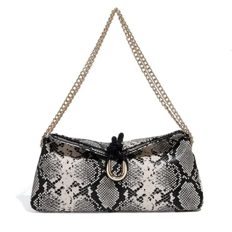 Neue modische Damentasche im Color-Block-Schlangenmuster mit Schulterriemen, vielseitiger Tragemöglichkeit und Kette, verstellbar über der Schulter, 2025