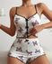2025 Neue Produkte Herzförmiges bedrucktes Kontrastfarben-Heimkleidungs-Pyjama-Set mit Hosenträgern und Schlitz vorne