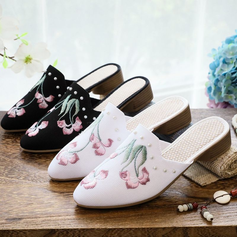 2021 Summer New Women's Embroidered Slippers with Flying Weaving, Embroidered Nails and Beads, Fashionable Outerwear