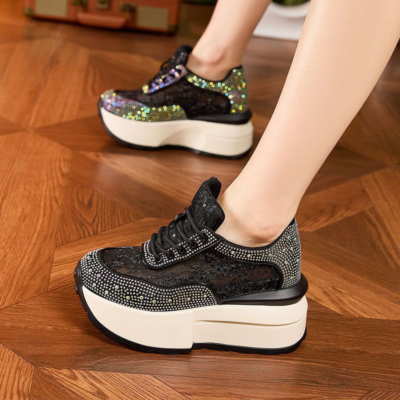 Thick soled white shoes for women in the summer of 2025, new water diamond hollow mesh sandals, versatile Forrest Gump casual shoes with increased height inside