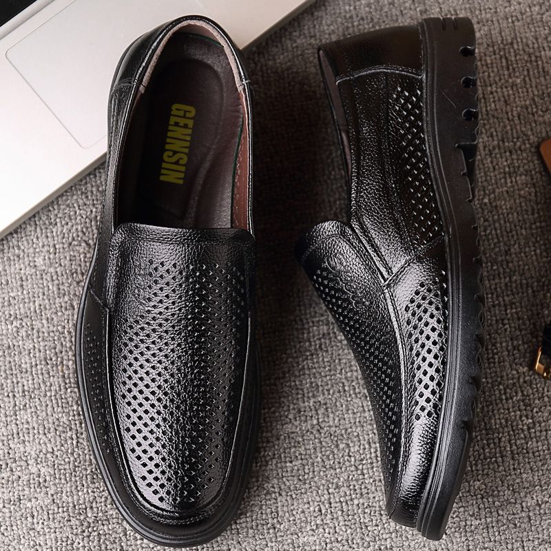Men's Shoes 2025 Summer New Hollow Leather Shoes Men's Business Casual Shoes Breathable Genuine Leather Sandals