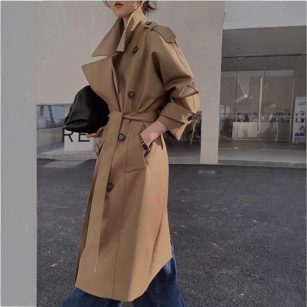 2025 Zhou Miao New British Style Design Sense Niche High-End Mittellanger Khaki Trenchcoat Loose Fit