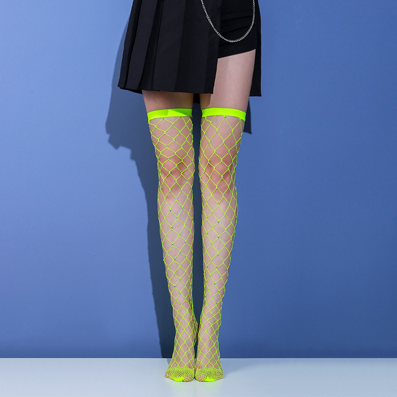 New Fashion Versatile Breathable Handmade Rhinestone Red Women's Solid Color Ultra-thin Long Tube Fishnet Stockings Single Color Socks